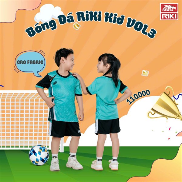 Bộ bóng đá trẻ em Riki VOL3 - Xanh viền trắng