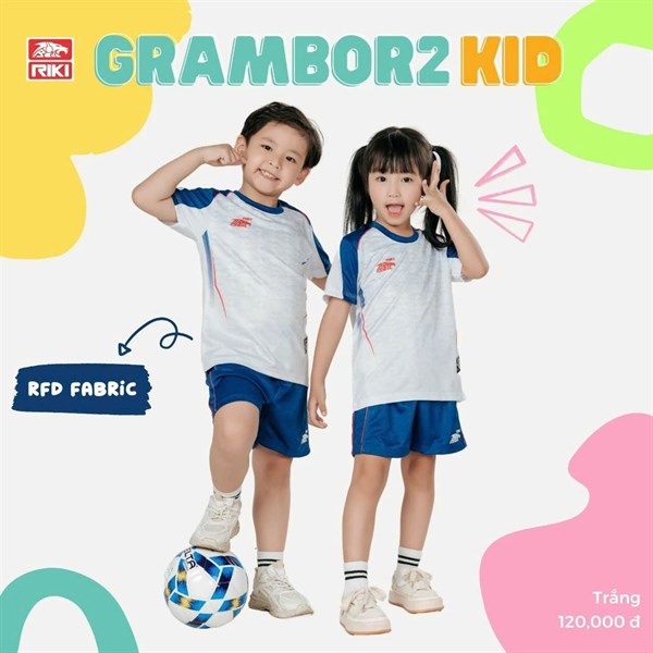 Bộ bóng đá trẻ em Riki VOL3 - Trắng viền xám