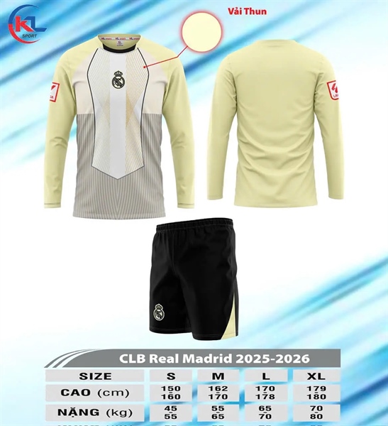 Bộ bóng đá tay dài - Real kem