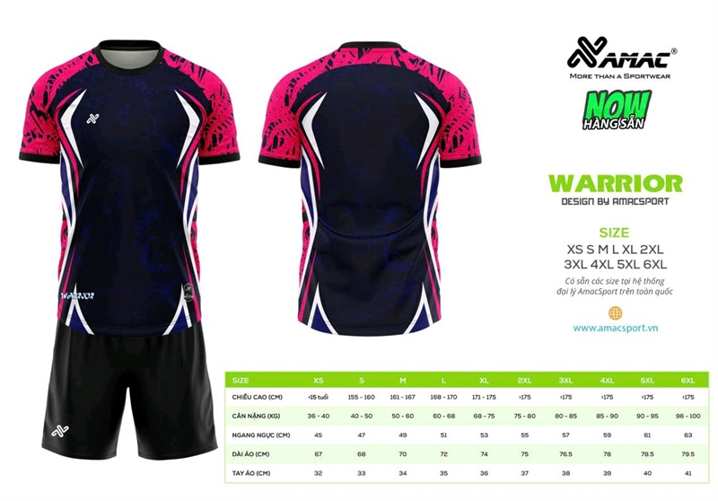 Bộ bóng đá AMAC - WARRIOR- Đen Hồng