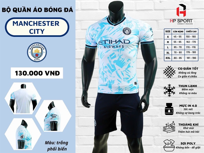 Bộ bóng đá Man City trắng xanh biển