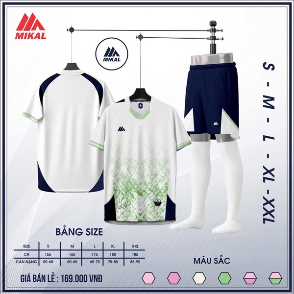 Bộ bóng đá Mikal MORED K3 - Trắng xanh